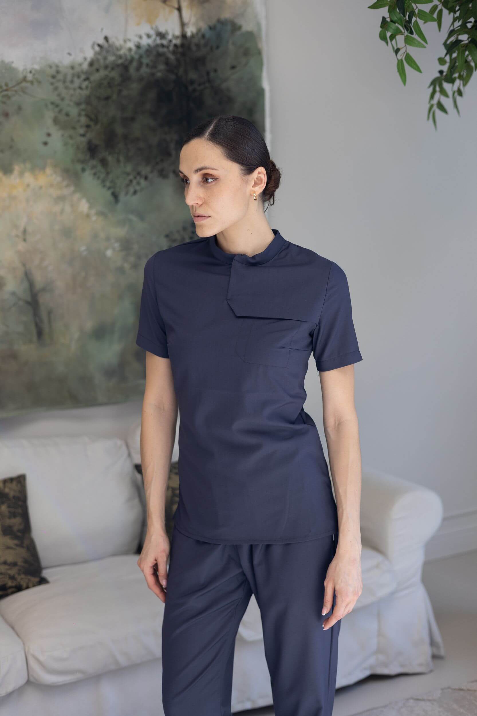 Женская медицинская блуза Гроссо в сером оттенке — сдержанное и универсальное решение для повседневной работы. Полуприлегающий крой аккуратно подчёркивает фигуру и не сковывает движений, обеспечивая комфорт в течение всей смены. Лаконичный вырез на шее с кнопками добавляет удобство и современный акцент.