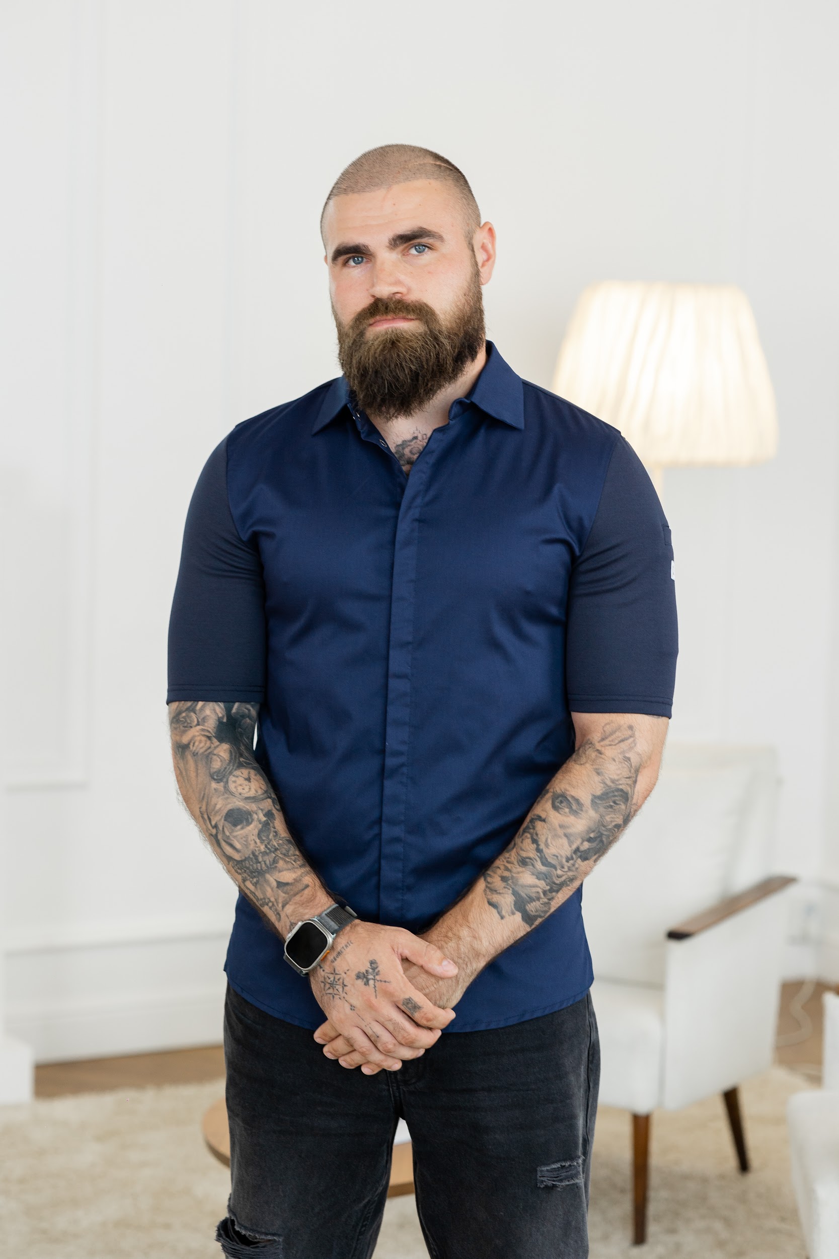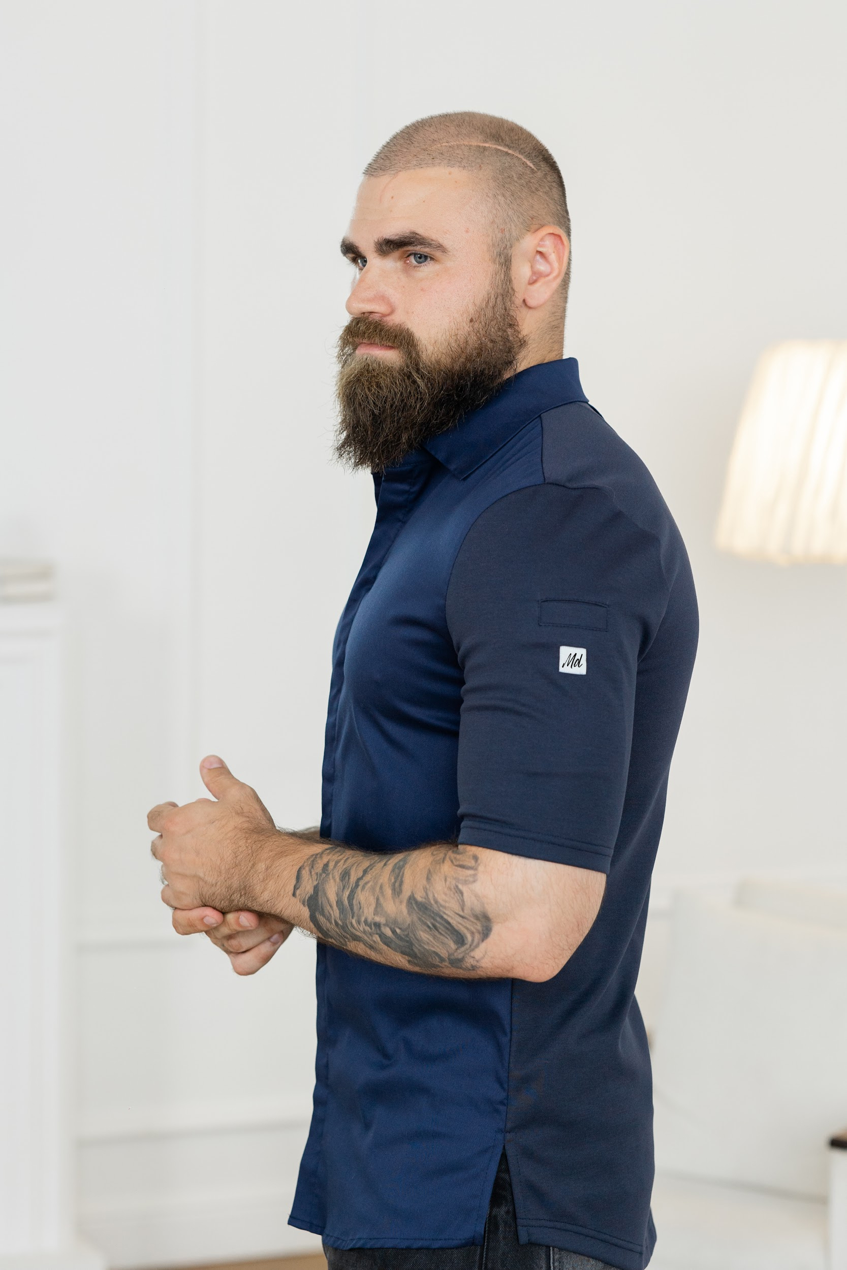 Медицинская рубашка Glori (short) мужская темно-синяя — современная модель для специалистов, предпочитающих комфорт и стиль в жаркое время года или для динамичной работы. Рубашка выполнена из эластичной и приятной на ощупь ткани, что обеспечивает свободу движений и поддерживает аккуратный вид даже после длительной носки. Приталенный силуэт и классический отложной воротник подчеркивают строгий профессиональный образ.