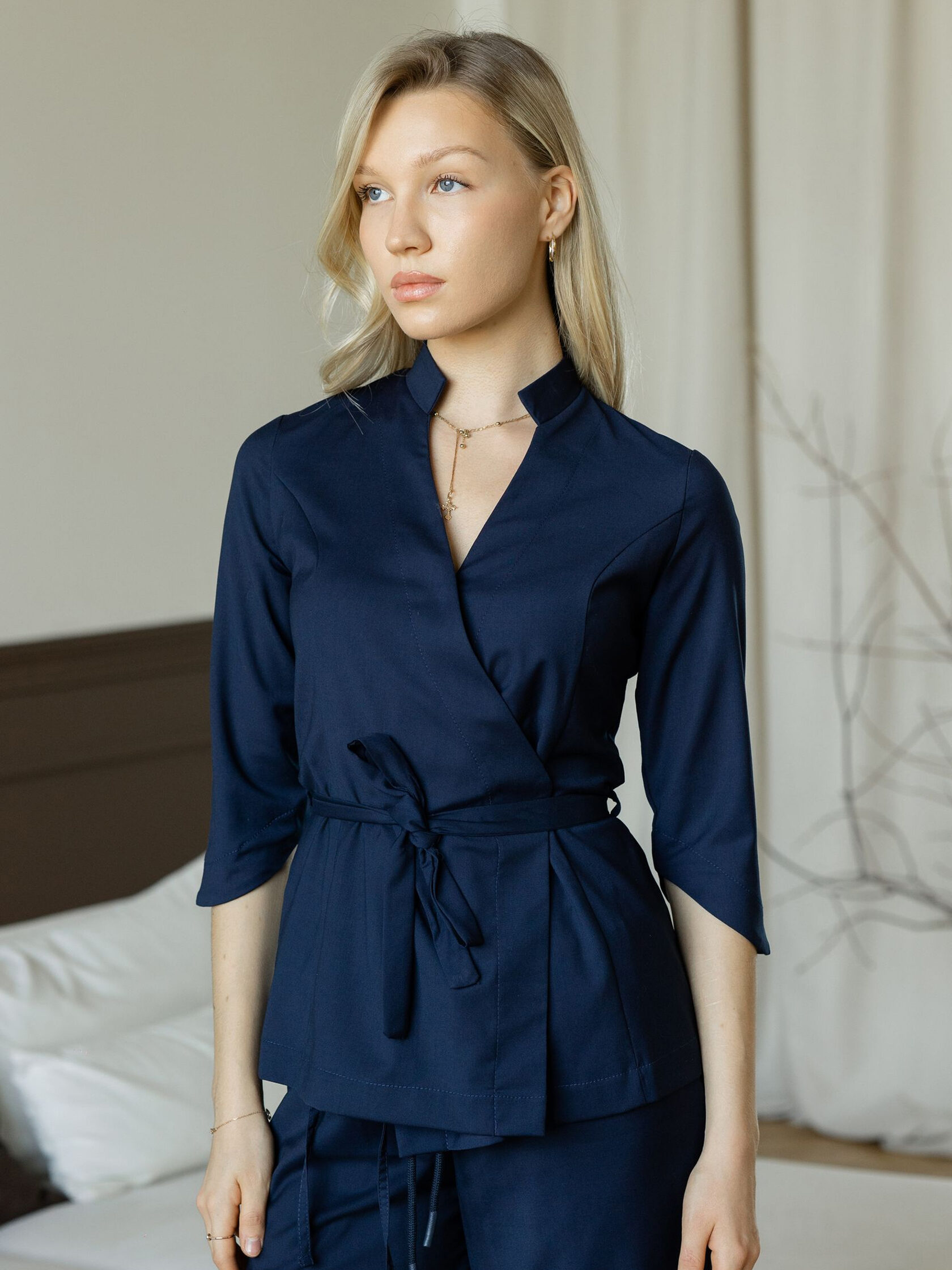 Медицинское кимоно женское графитового цвета — стильная альтернатива классическим халатам для работы в медицинской и бьюти-сфере. Лаконичный прямой крой с запáхом и поясом подчёркивает фигуру, обеспечивая свободу движений и комфорт на протяжении всей смены. Ткань насыщенного графитового оттенка сохраняет опрятный вид и легка в уходе.