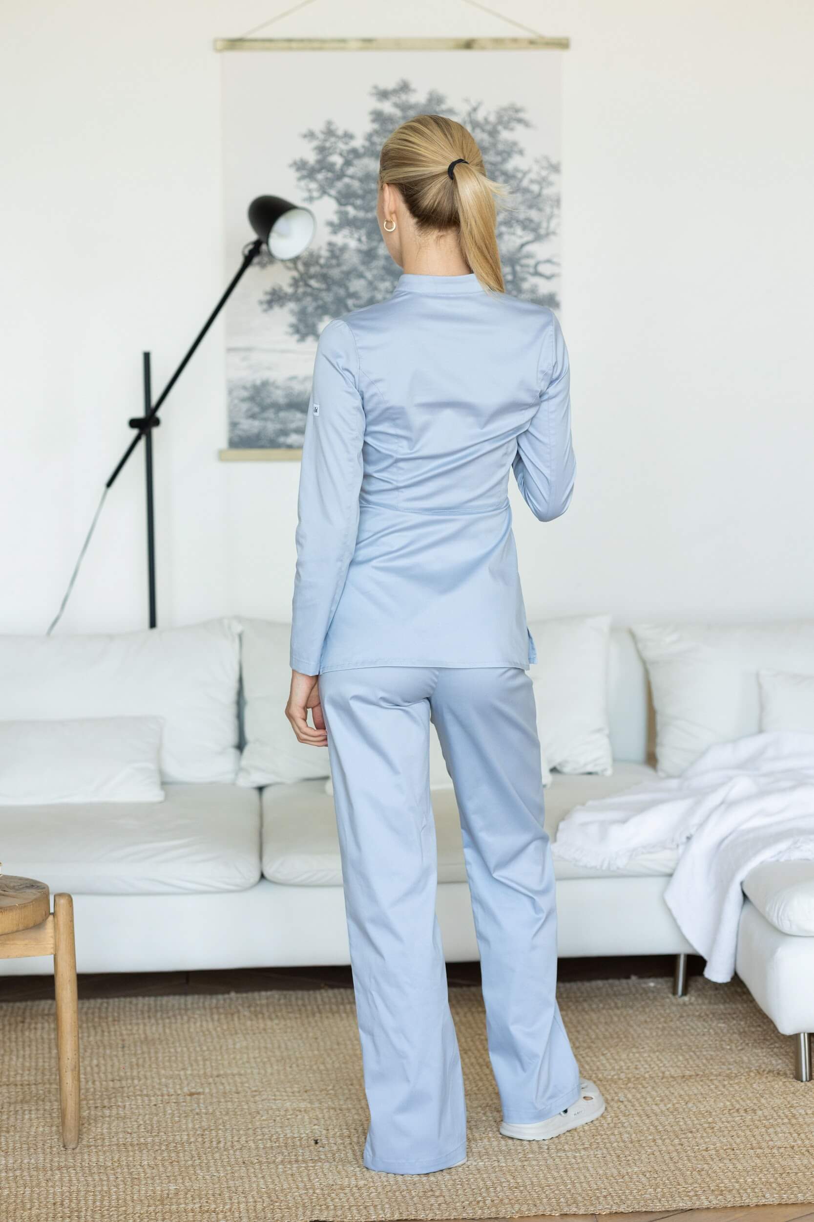 Ткань дышащая, легко стирается, быстро сохнет и сохраняет первозданный вид даже после многочисленных стирок. Серо-голубой оттенок добавляет индивидуальности, отлично сочетается с нашими медицинскими брюками, клиники и лаборатории. Эта рубашка поможет создать гармоничный, аккуратный и современный образ специалиста.