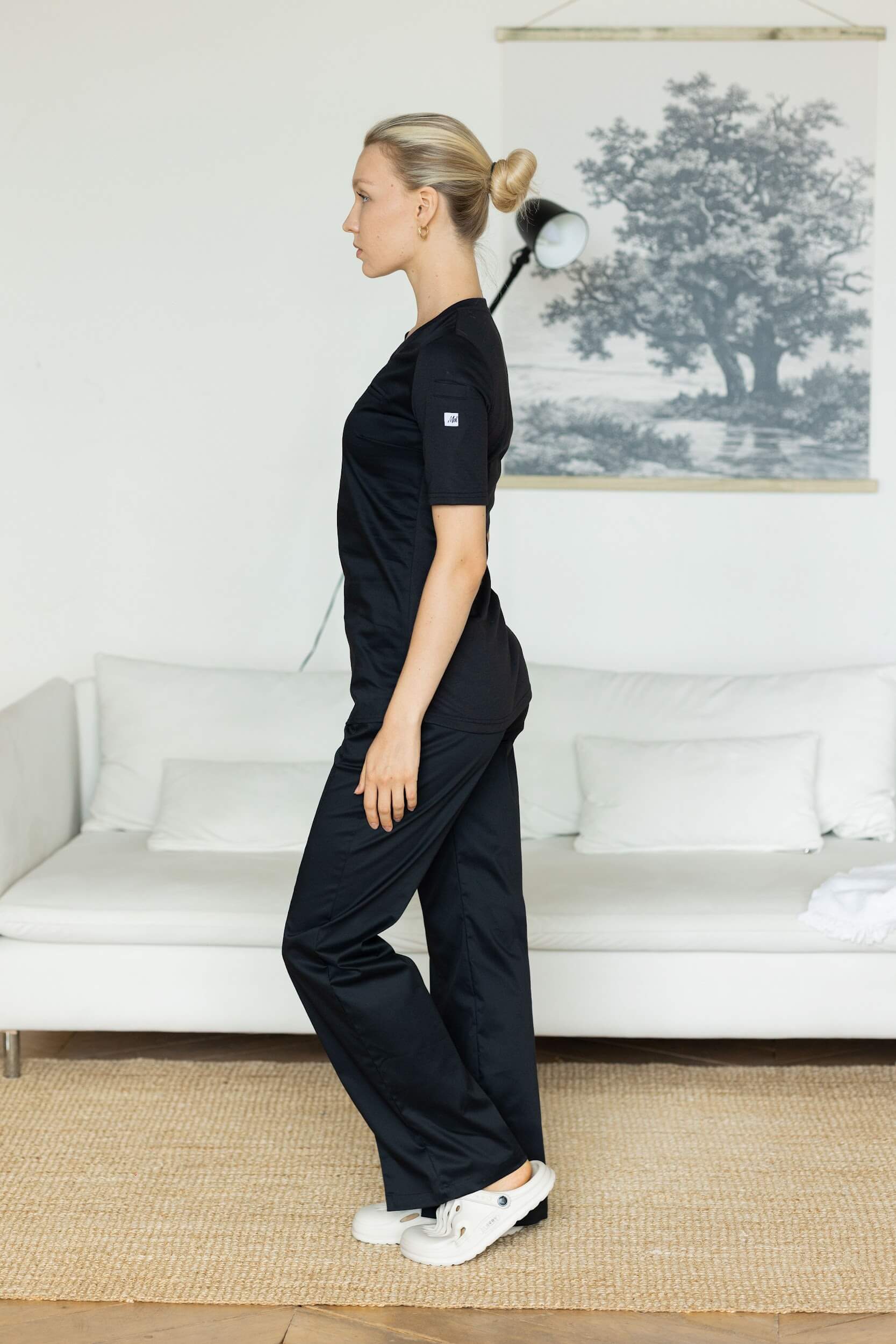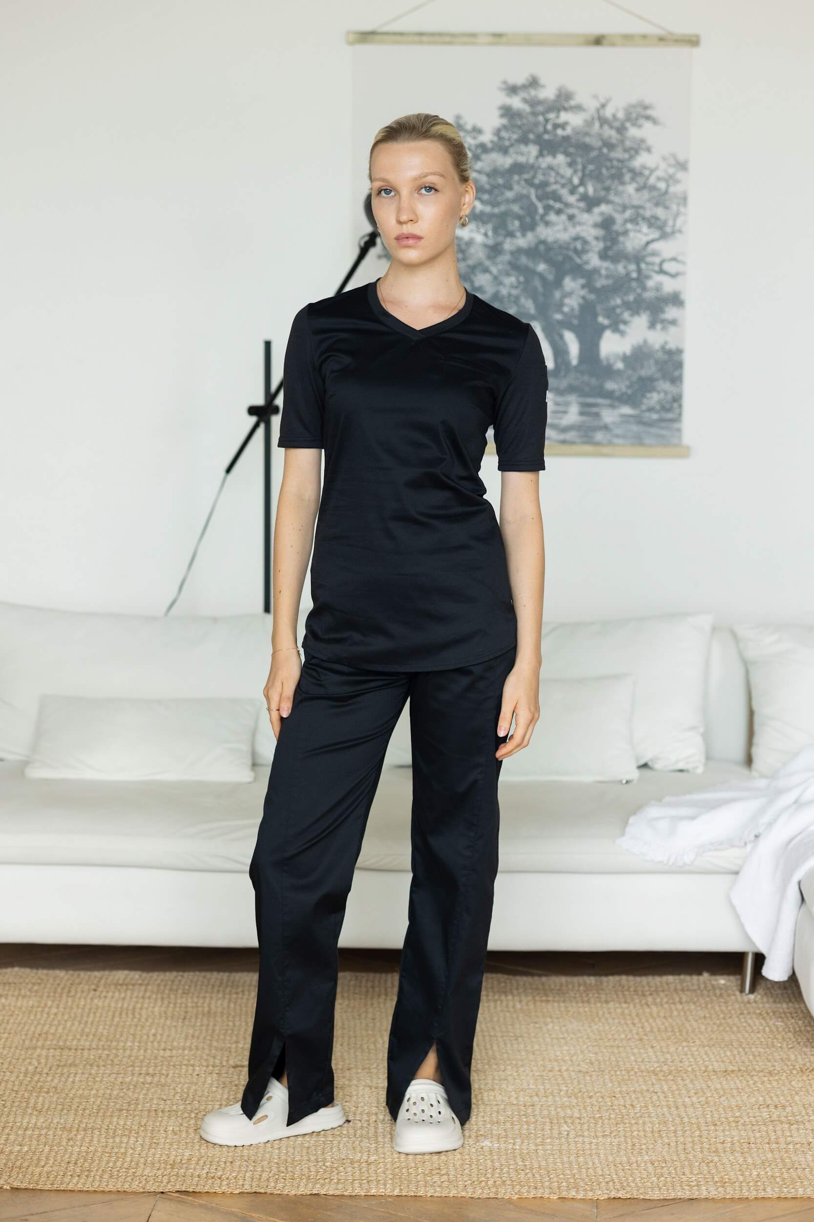 Медицинская рубашка Role женская черная — универсальный выбор для стильного и профессионального образа в любой сфере медицины и красоты. Прямой крой с V-образным вырезом и короткими рукавами обеспечивает свободу движений и идеальную посадку, а гипоаллергенная ткань приятна к телу, хорошо держит форму и выдерживает частые стирки.