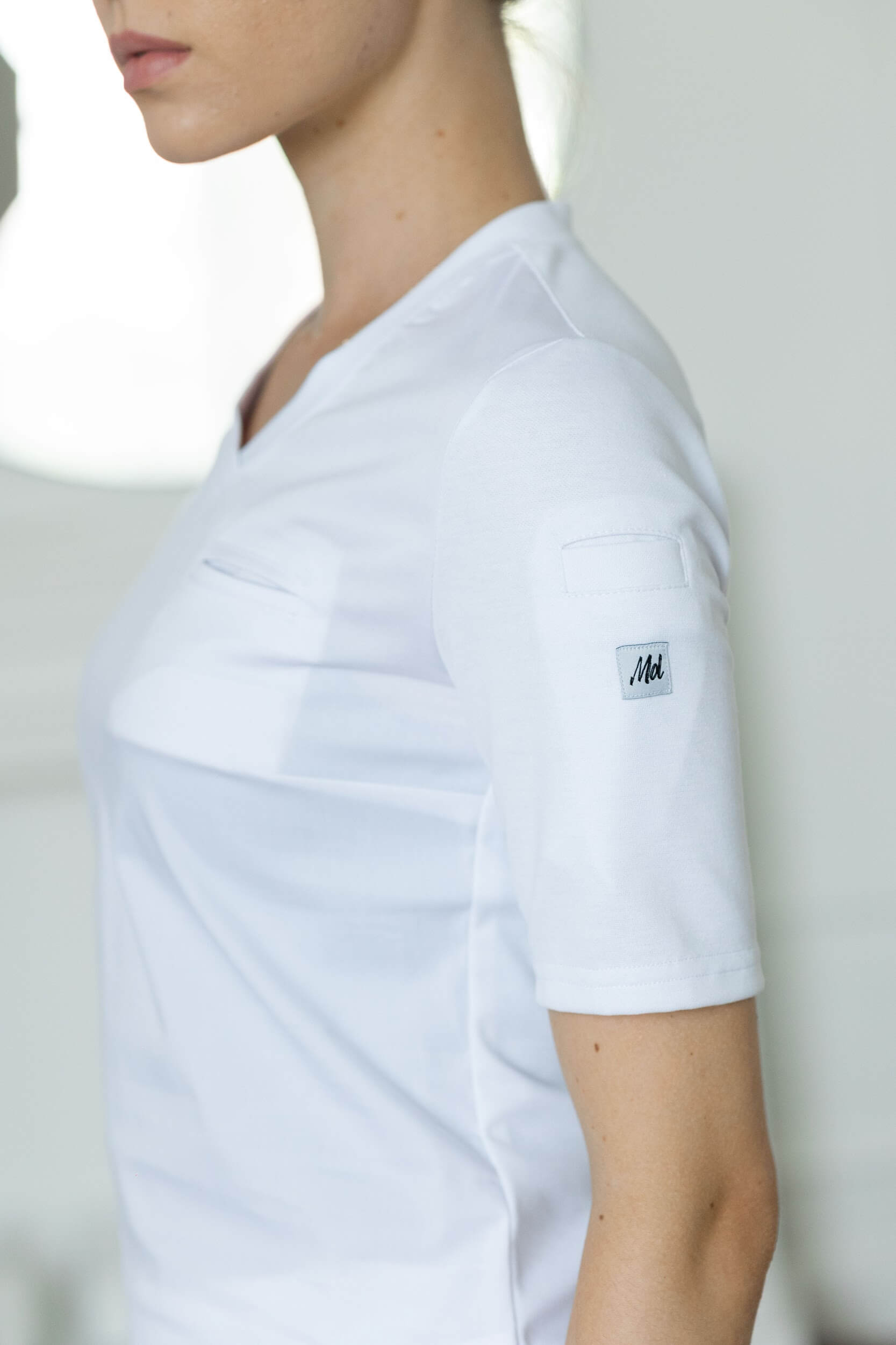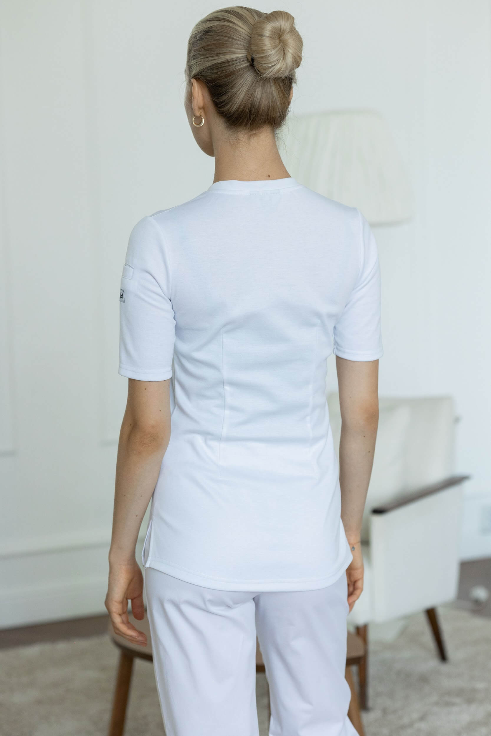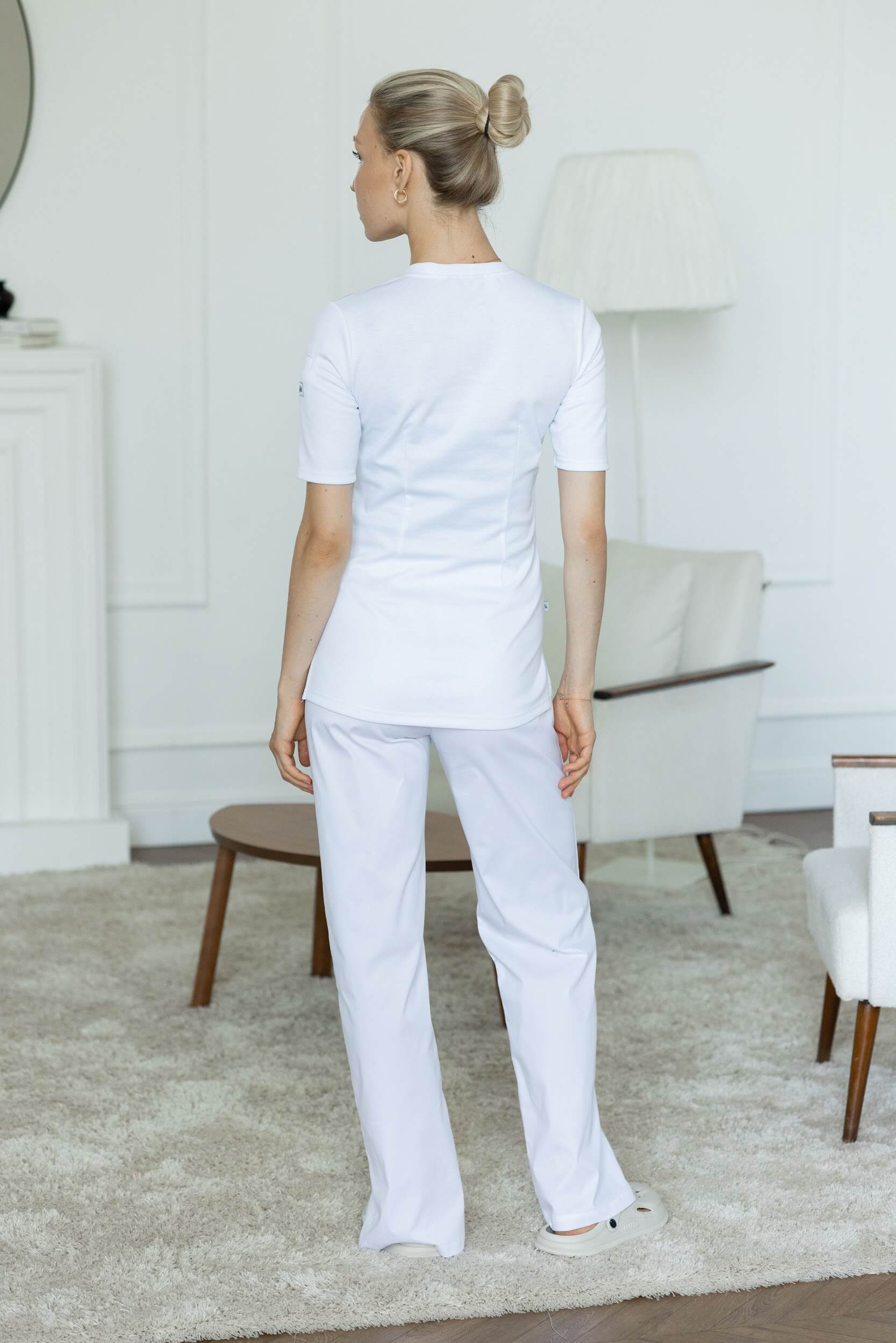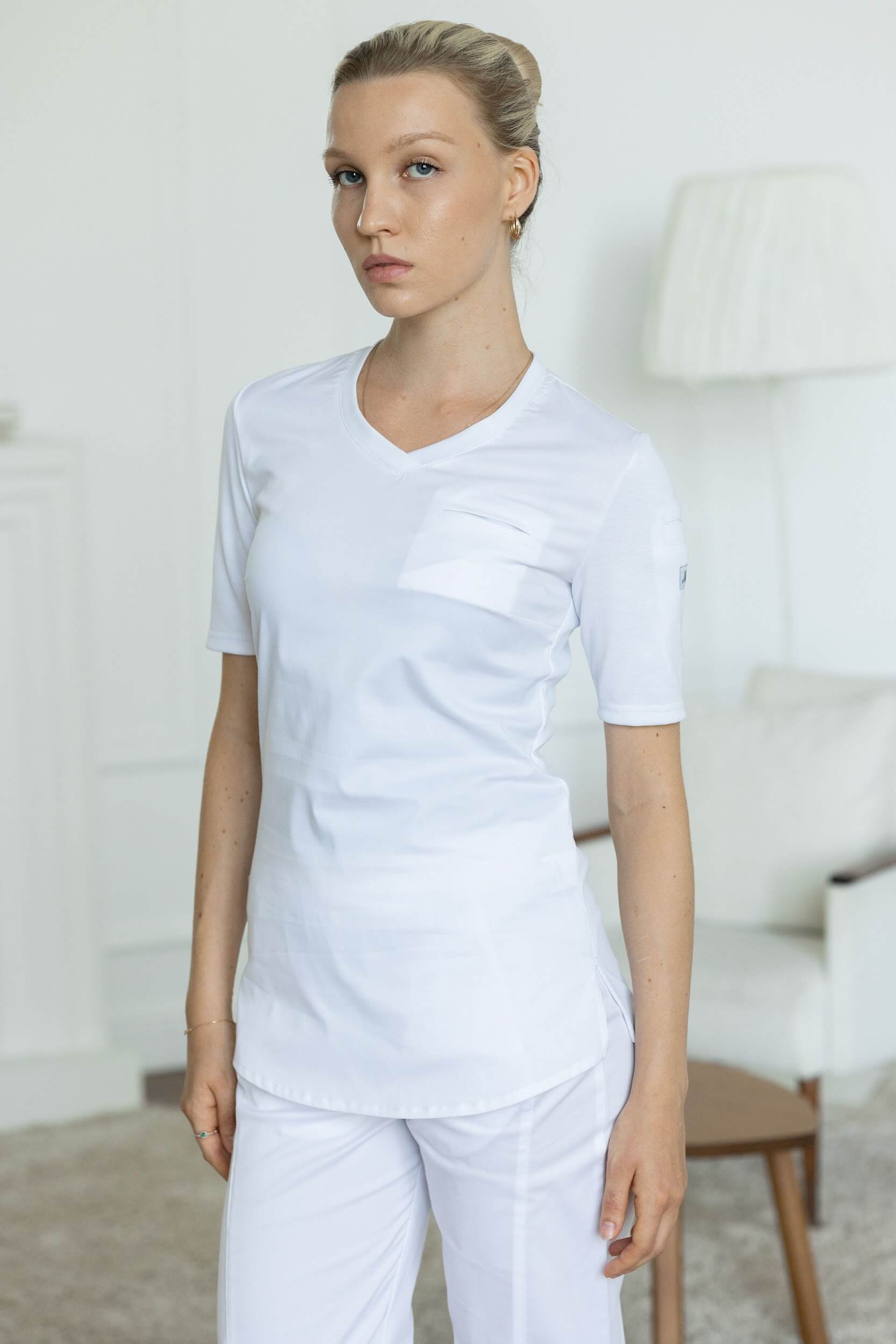 Медицинская рубашка Role женская белая — современное и универсальное решение для специалистов любых медицинских и бьюти-направлений. Полуприлегающий силуэт с V-образным вырезом подчёркивает аккуратность образа, а короткие рукава обеспечивают свободу движений даже в самые интенсивные смены. Мягкий дышащий материал приятен к телу, поддерживает оптимальную терморегуляцию и быстро сохнет после стирки.