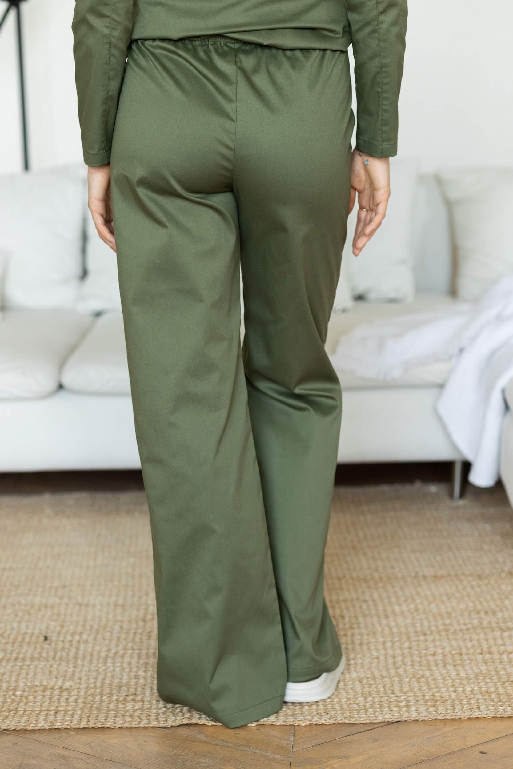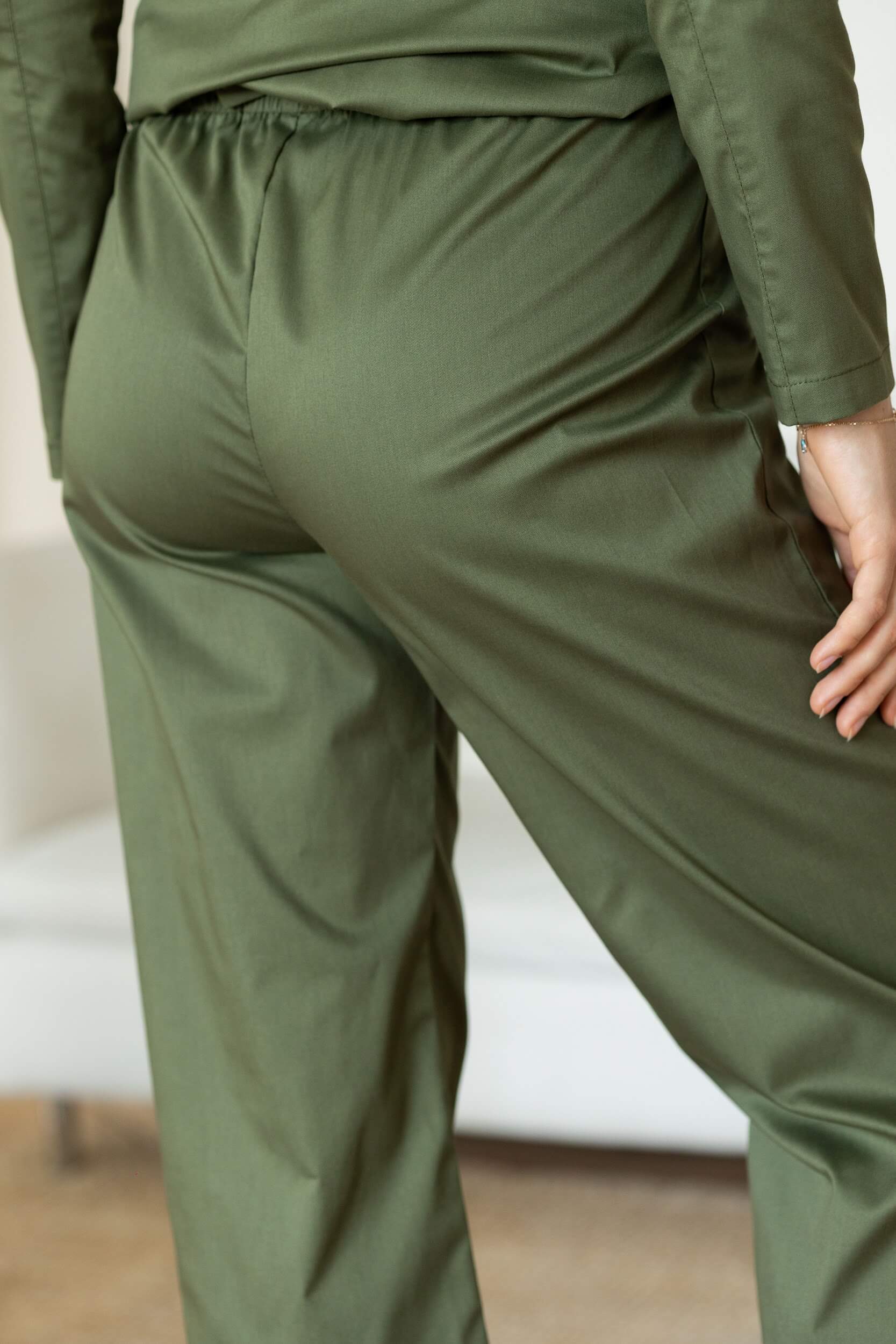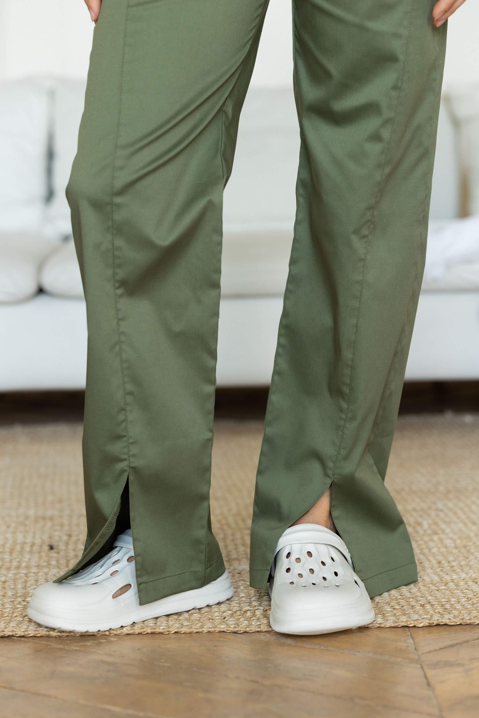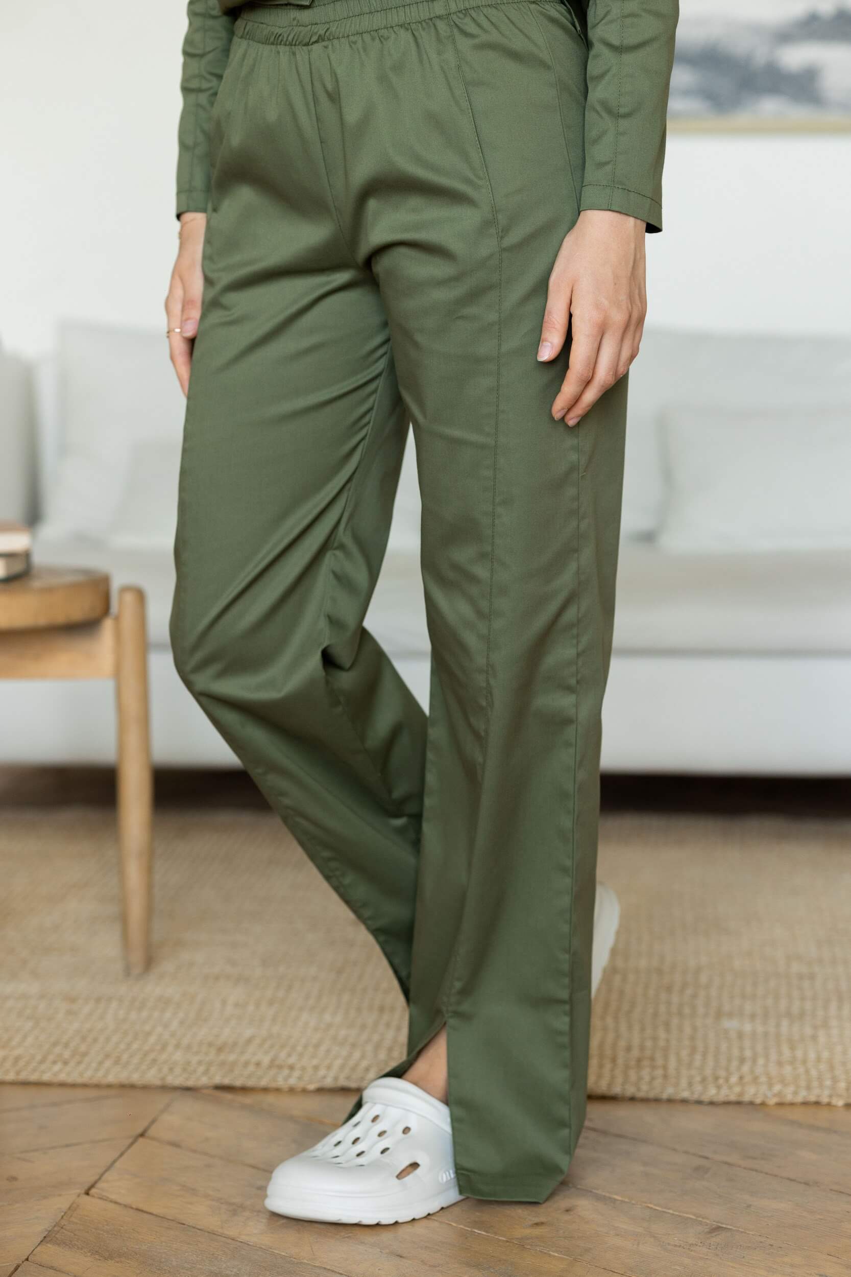 Медицинские брюки женские цвета хаки — современный выбор для тех, кто хочет добавить стильный акцент в рабочий гардероб. Натуральный оттенок удачно сочетается с медицинскими топами нейтральных и насыщенных тонов, позволяя создавать индивидуальный образ. Прямой крой с разрезами по низу обеспечивает свободу движений и подчёркивает современный стиль.